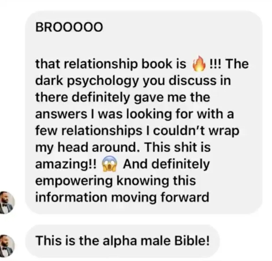 "Just wanted to say how much you've helped me take my game to the next level. Love you man. When I found you I wasn't a noob I still sometimes kept the girl I want. But I was always missing the intricacies you teach and it's by far the best on the internet. I judge every dating coach I see and give them a non biased fair shot. I can say whole heartedly that none of them dow what you do bc I had a good bit of game but not as much as I wanted. You were the only one who could fill that gap and exposed me to so much more game I didn't even know existed."