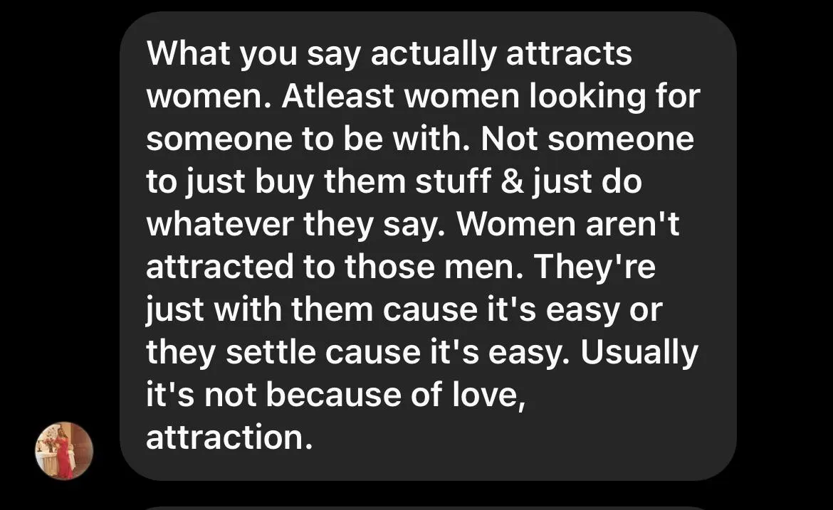 "Hey Danya, just had to take a minute out of my day to say that you are absolutely right about women. You know them in-an-out. Just a quick story I wanted to share that my ex is now messaging me begging for me back saying things like 'just don't sleep with anyone else i'll take take of all your needs'. You're completely right about ignoring them and putting them into their place. Everything is spot on. Have a good day man!"